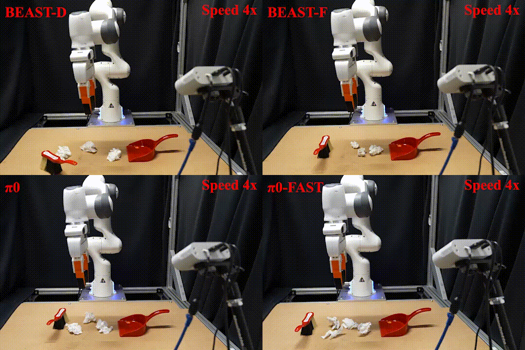 This paper introduces BEAST, an action tokenizer leveraging B-splines to convert action sequences into discrete or continuous tokens. Unlike prior tokenization approaches, this method requires no separate training phase and consistently generates uniform-length tokens for rapid parallel decoding. BEAST significantly reduces both training and inference computational costs while maintaining competitive task performance and generating smooth high-frequency control signals suitable for continuous manipulation tasks.